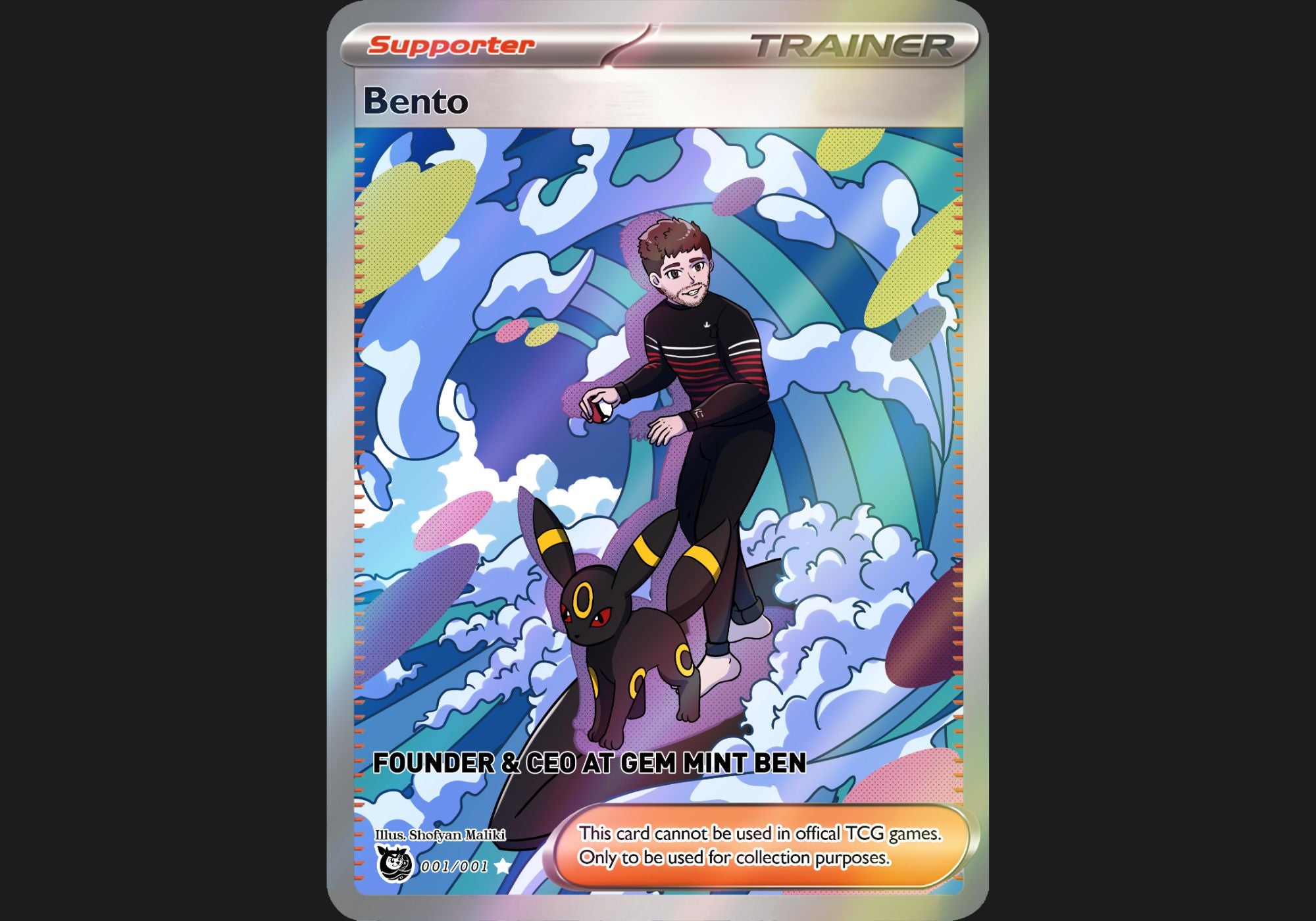 Gem Mint Ben is his brainchild, born from childhood days spent trading Pokémon cards at recess.